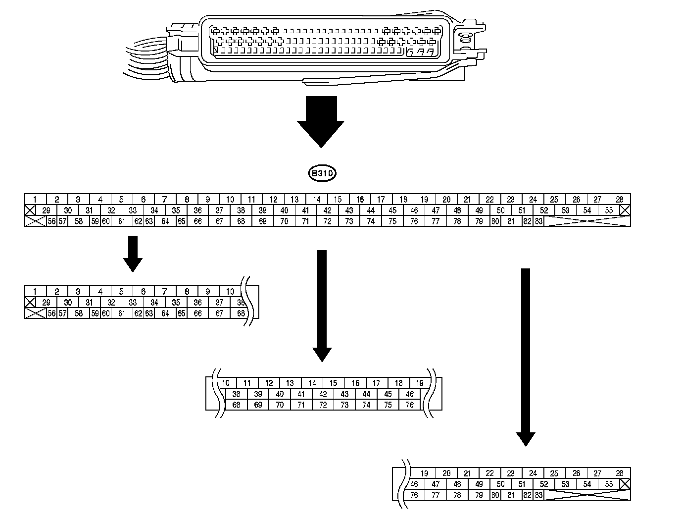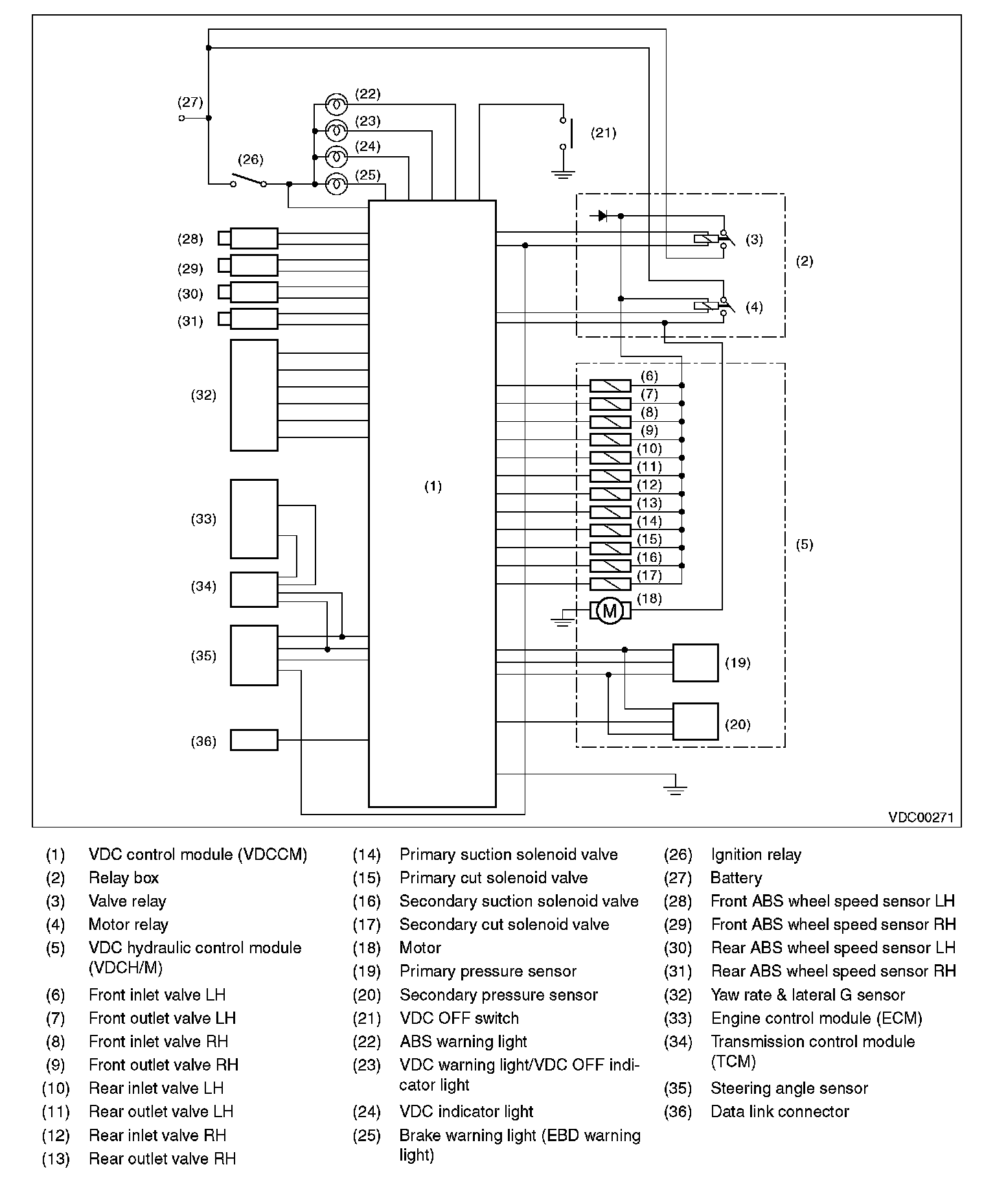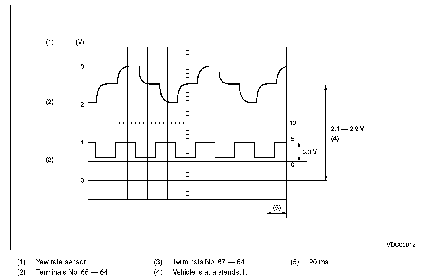 ^ When the connector is removed from VDCCM, the connector switch closes the circuit between terminals No. 53 and 54. Then, ABS warning light and brake warning light (EBD warning light) illuminates.