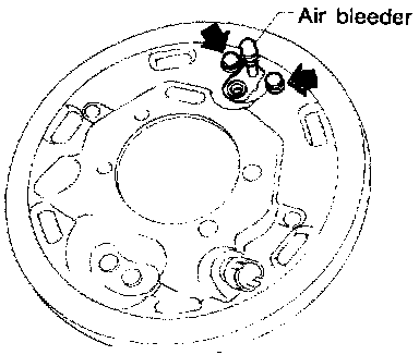 11) Remove the bolts installing wheel cylinder on back plate, and remove