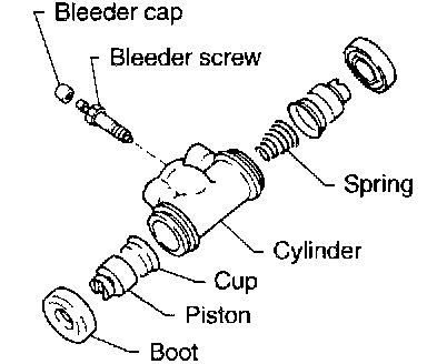 2) Remove the piston, cup, spring and air bleeder screw and cap.