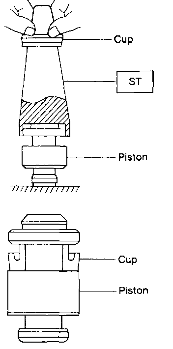 1) When installing the cup, use ST, apply brake fluid to the frictional surface for smooth installation and pay attention to cup direction.