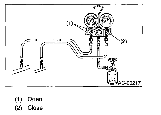CAUTION: Do not open the high-pressure valve. Be sure to open the low-pressure valve.