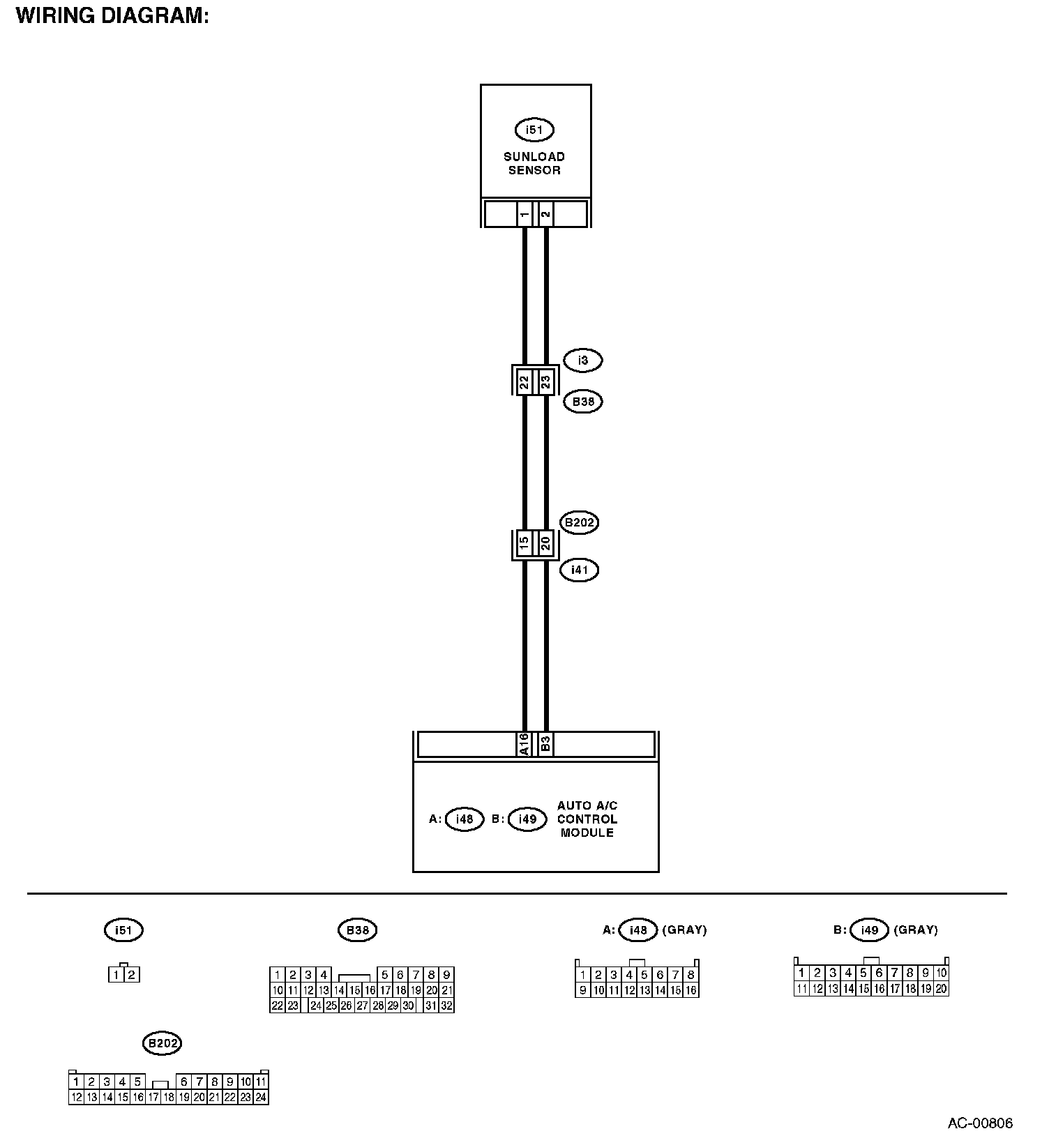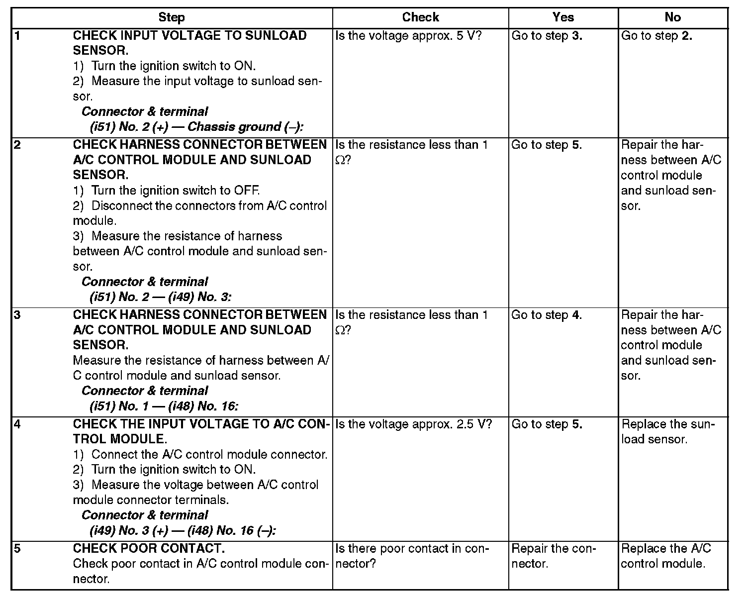 NOTE: When the sunload sensor is checked indoors or in the shade, open circuit might be indicated. Always check the sunload sensor at a place where sun shines directly on it.