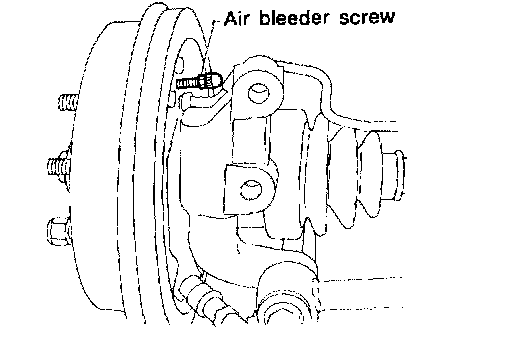 9) After completing the bleeding operation, hold brake pedal depressed and tighten screw and install bleeder cap.