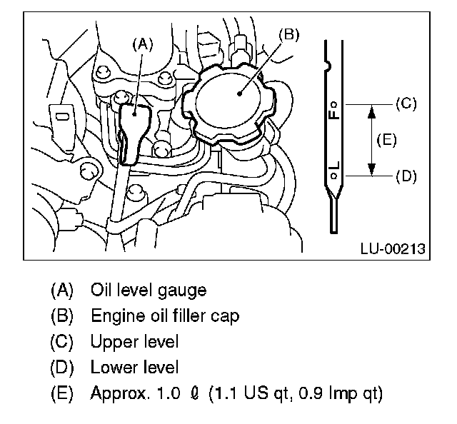 NOTE: To prevent overfilling of engine oil, do not add oil above "F" line when the engine is cold.