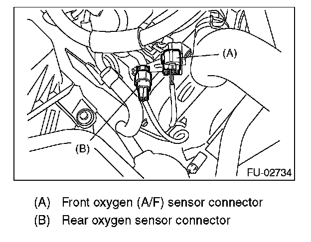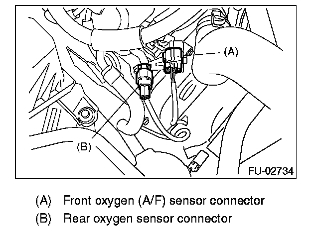 2. Remove the clip fastening the harness and disconnect the front oxygen (A/F) sensor connector.