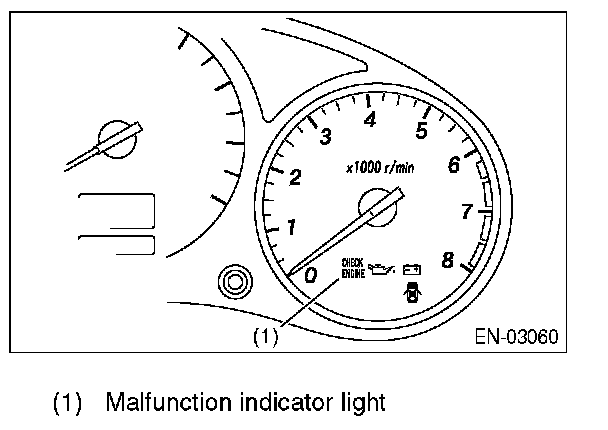 ACTIVATION OF MALFUNCTION INDICATOR LIGHT1. When the ignition switch is turned on (engine off), the malfunction indicator light in the combination meter illuminates.
