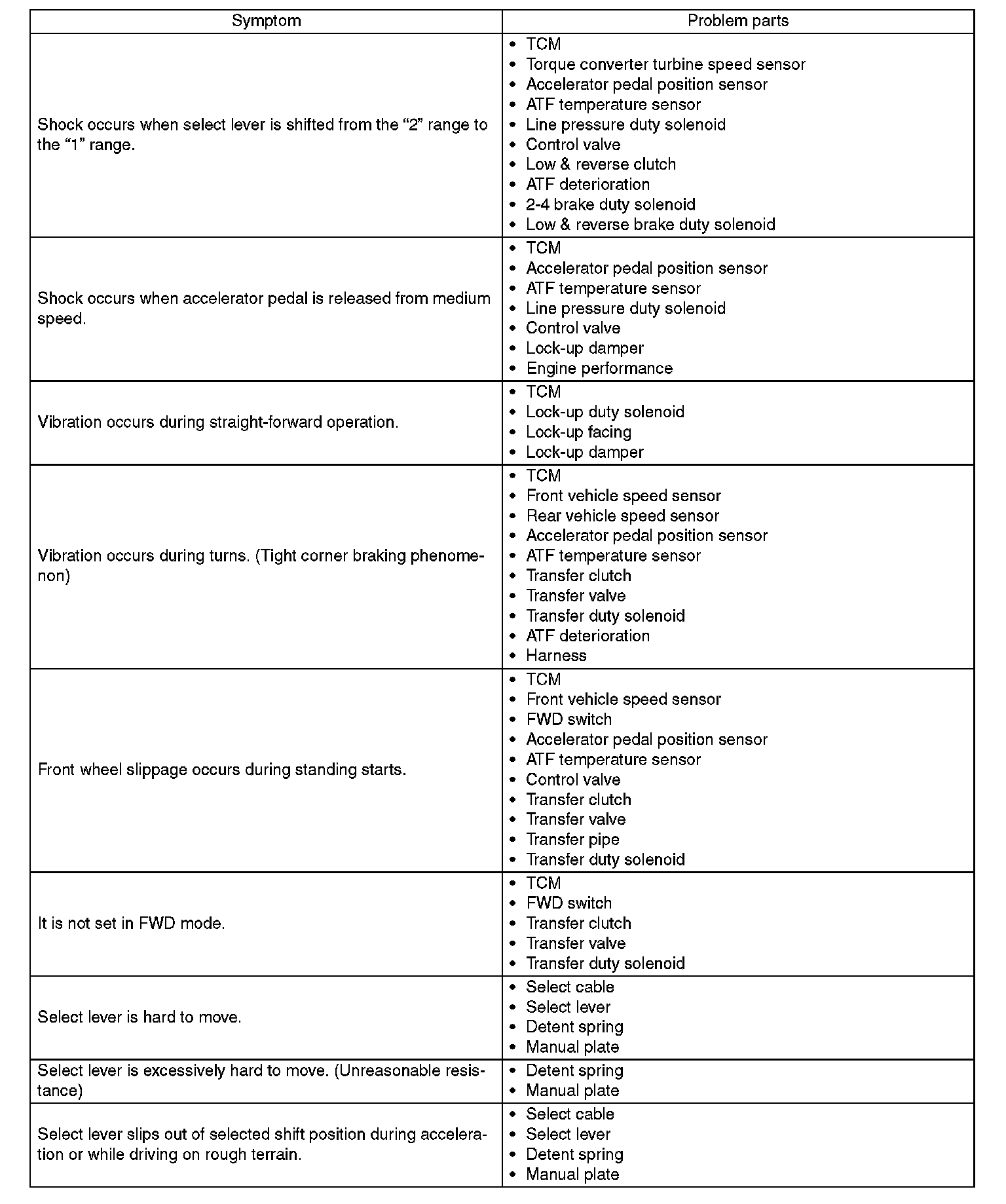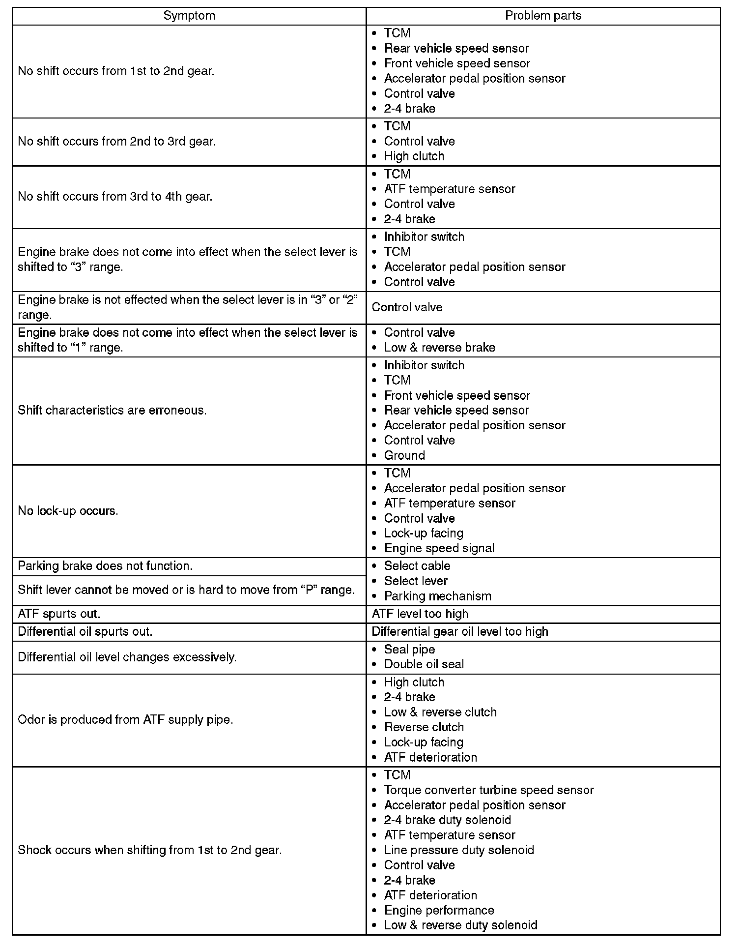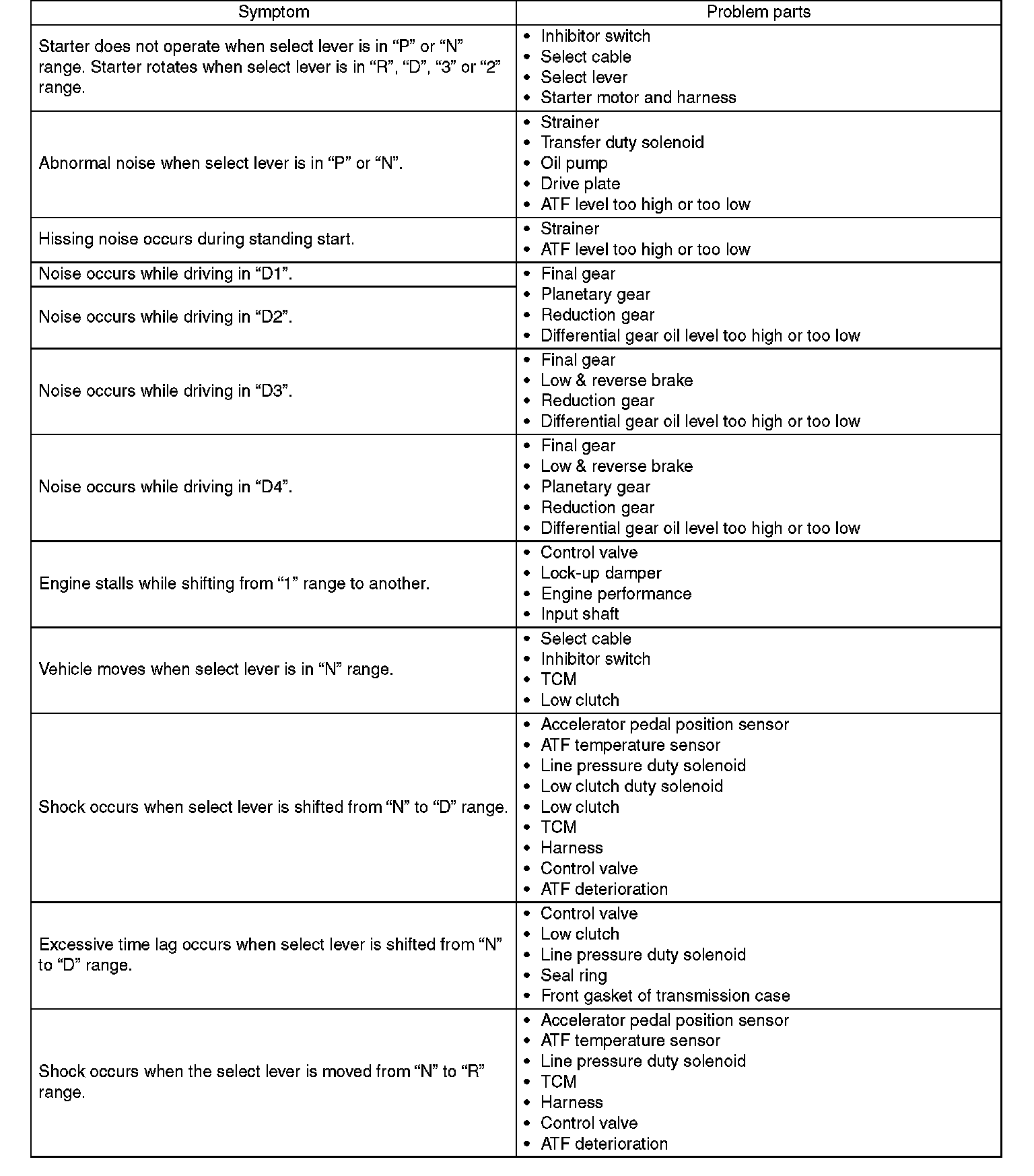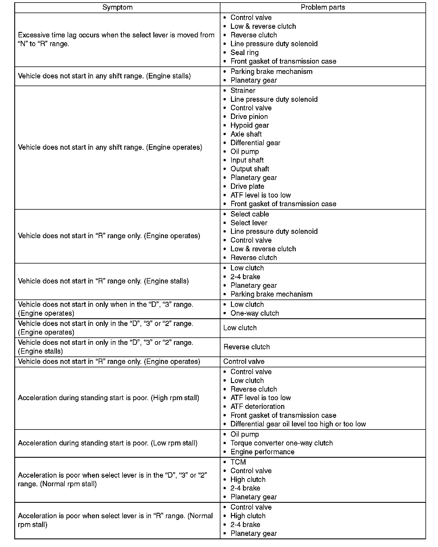 General Diagnostic Table