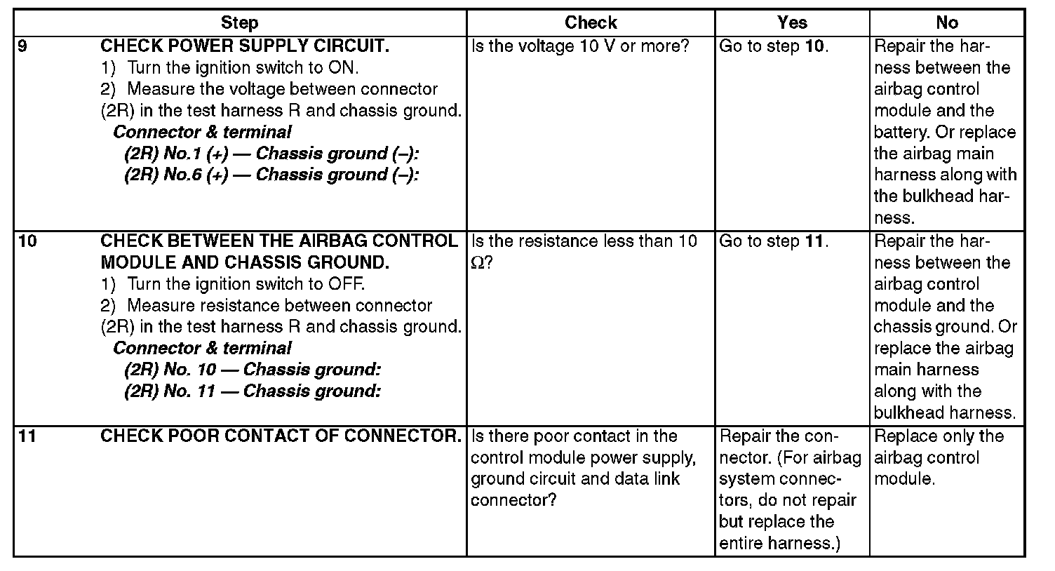 Communication is impossible between the airbag control module and the Subaru Select Monitor.