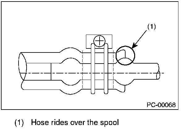 - Replace the hose with a new part if it rides over the stay or spool.