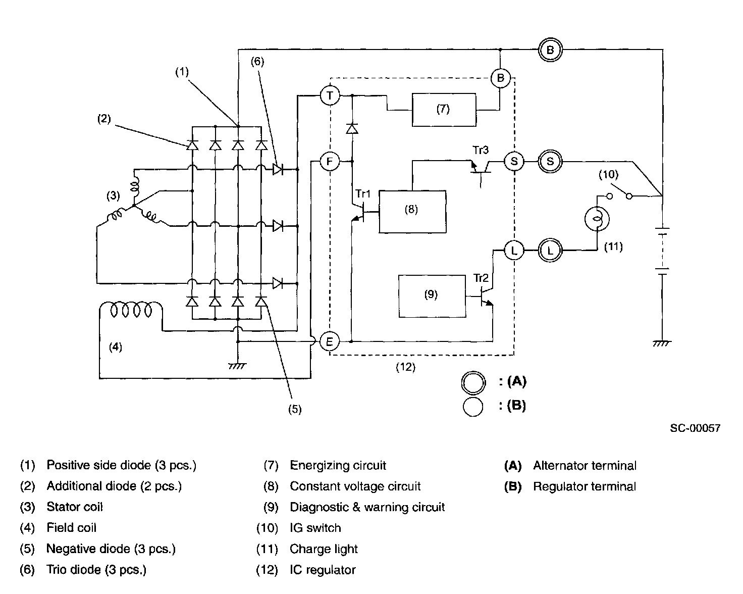 The generator has a built-in regulator which provides diagnostic functions in addition to a voltage regulating function as follows:
