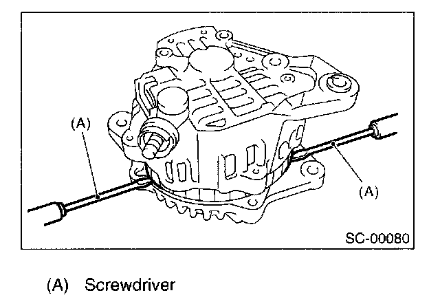 3. Then insert the tip of a flat tip screwdriver into the gap between stator core and front cover. Pry them apart to disassemble.