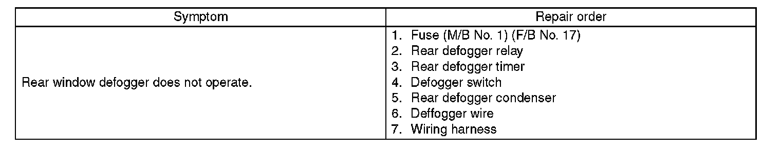 5. Connect the tester probe of positive lead of voltmeter to positive terminal of heat wire and move tester probe of negative lead along the heat wire up to the negative terminal end. If voltage changes from zero to several volts during movement of tester probe, heat wire is open at the voltage change point.