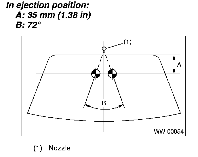 When the vehicle stops, adjust the washer liquid ejection position as shown in the figure.