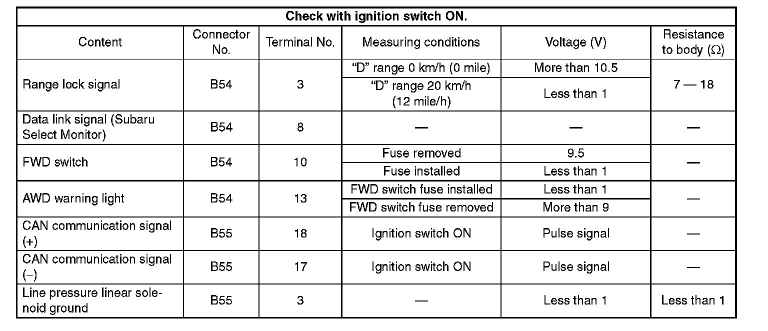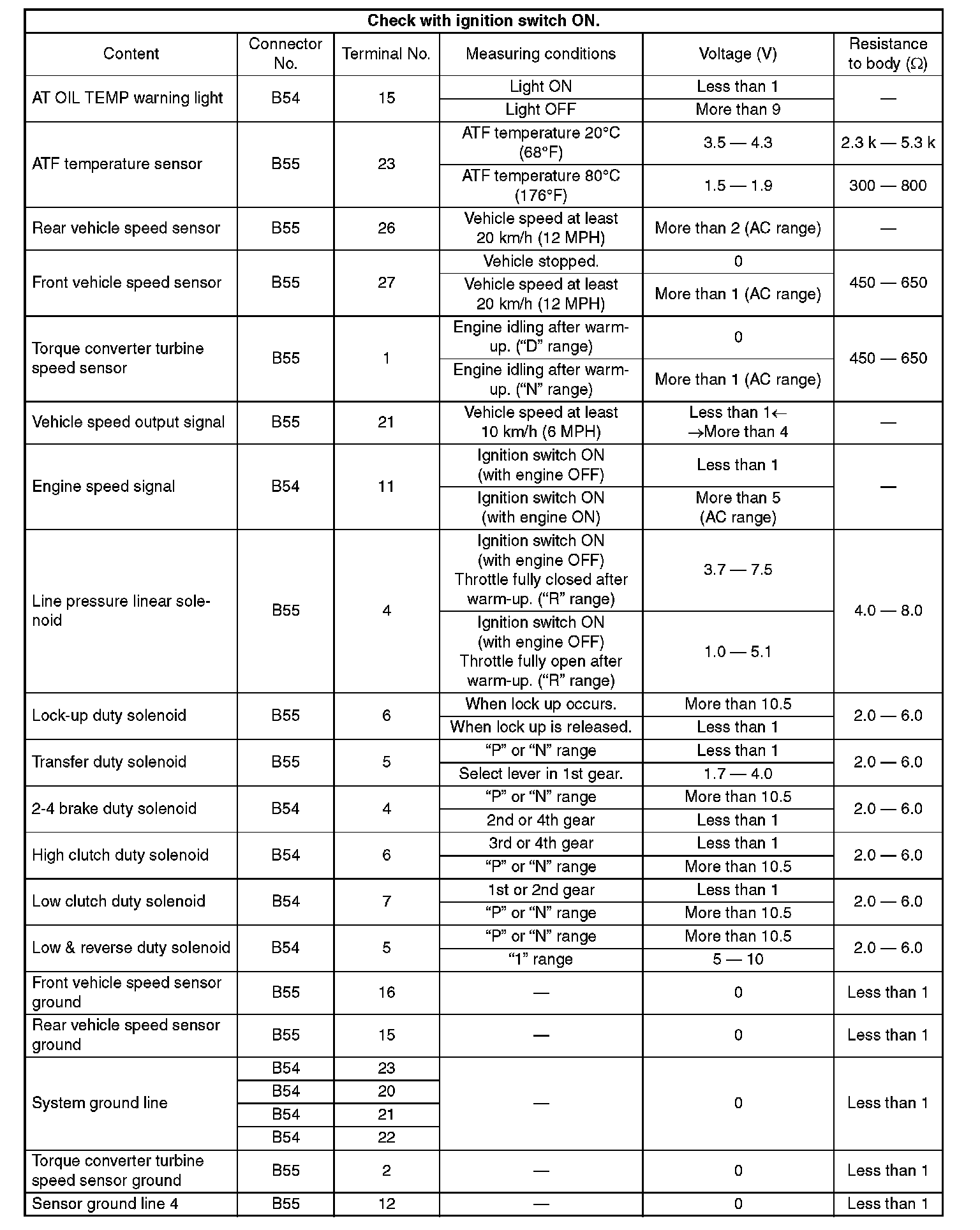 Transmission Control Module (TCM) I/O Signal ELECTRICAL SPECIFICATION Transmission Control Module (TCM) I/O Signal 1: