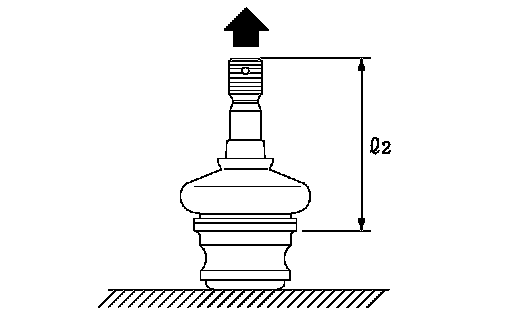 1) Measure the play of ball joint by the following procedures. Replace with a new one when the play exceeds specified value.(1) With 686 N (70 kgf, 154 lbs.) loaded in direction shown in the figure, measure the dimension l1.