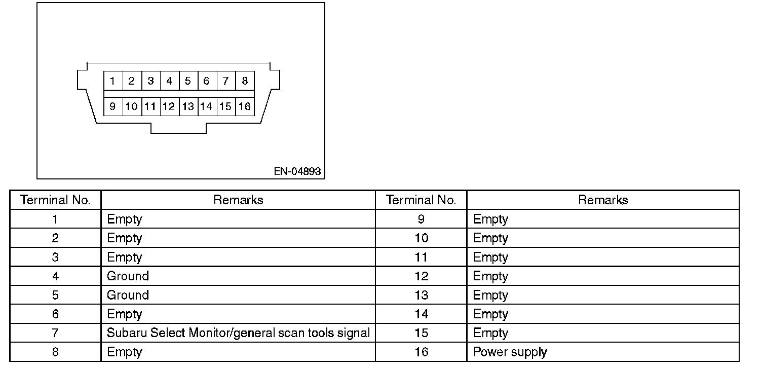 Data Link ConnectorNOTE This connector is used both for general scan tools and the Subaru Select Monitor.