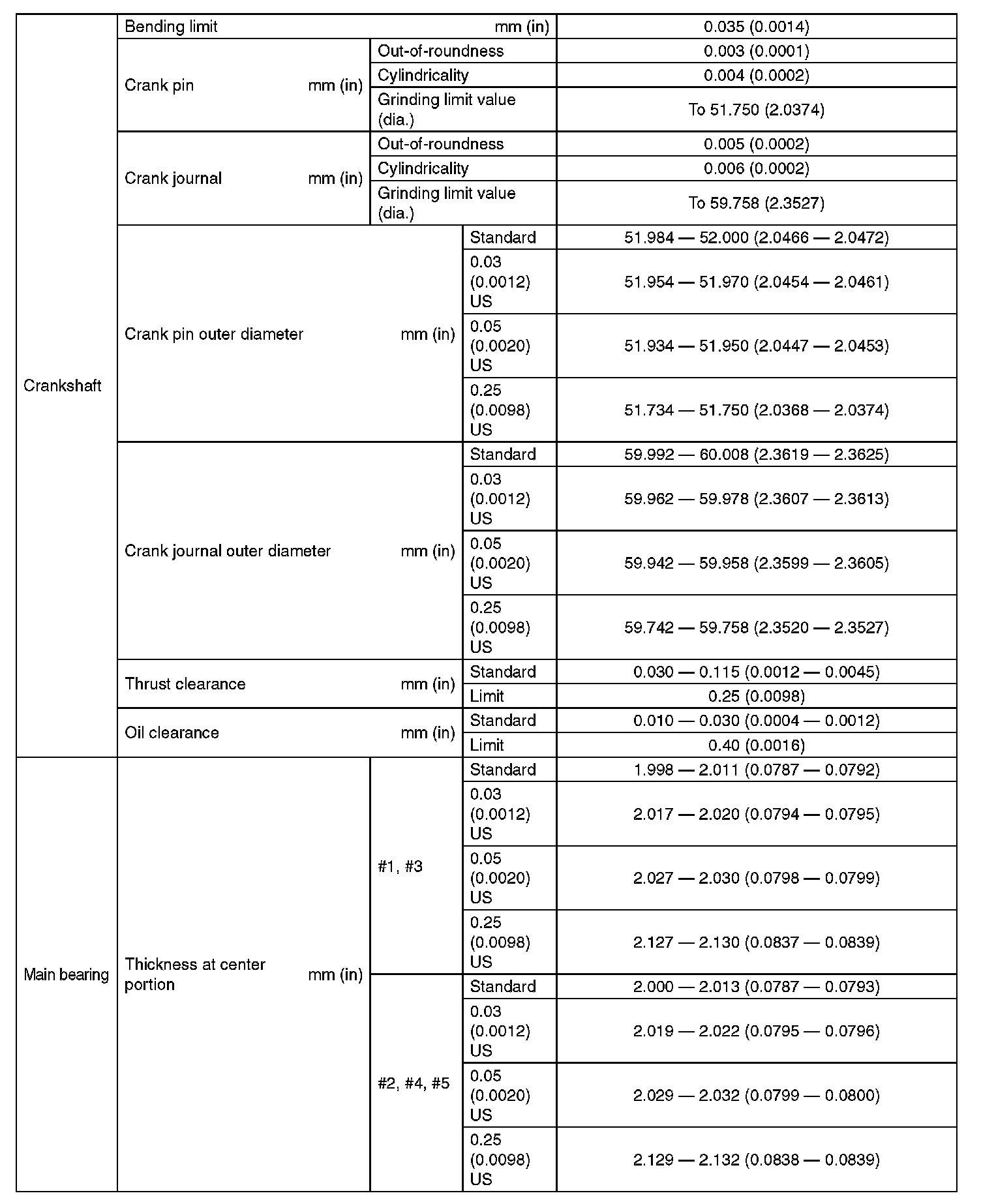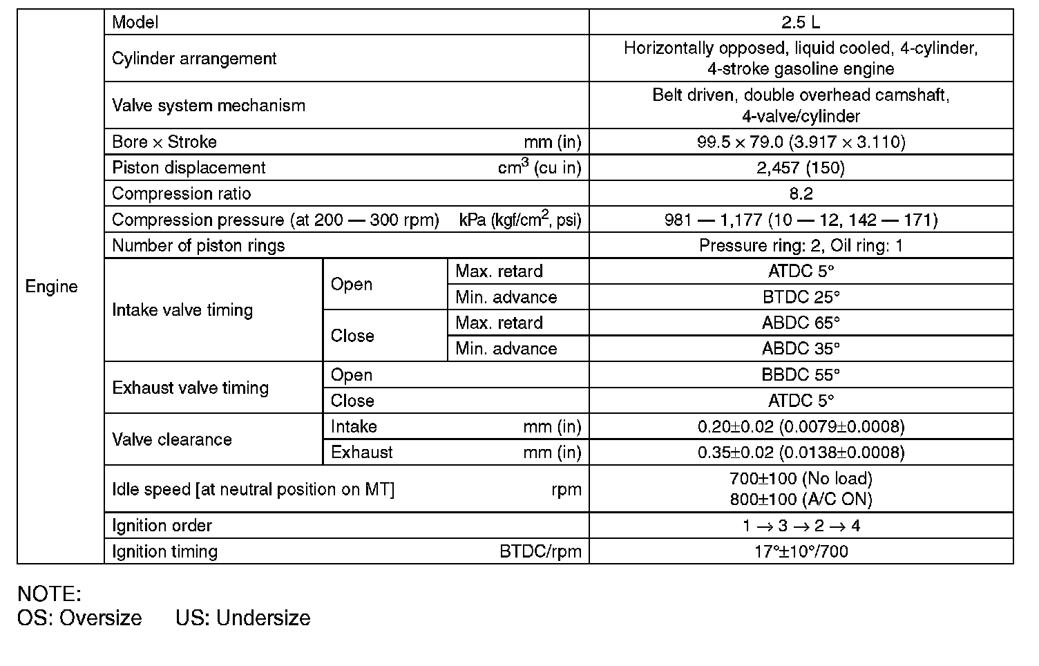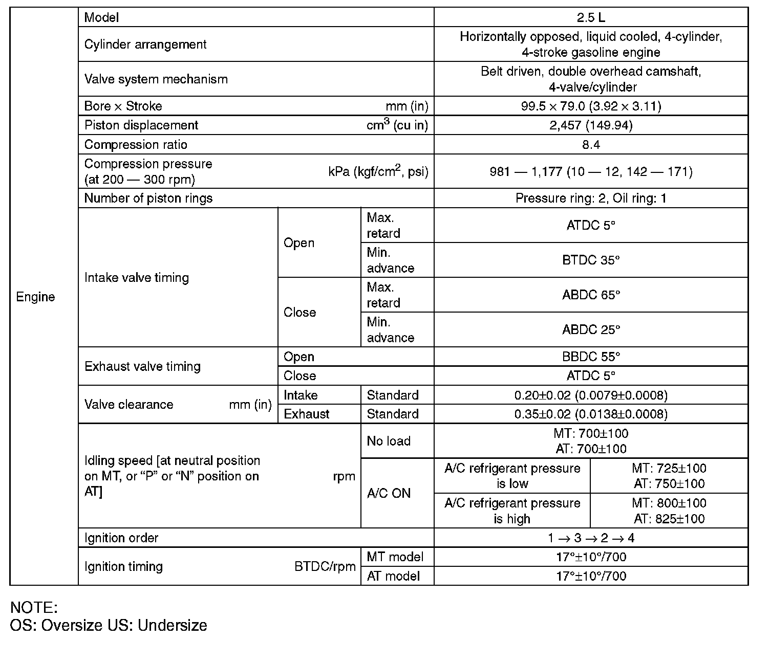 SPECIFICATION (Except For STI Model) (Part 4):