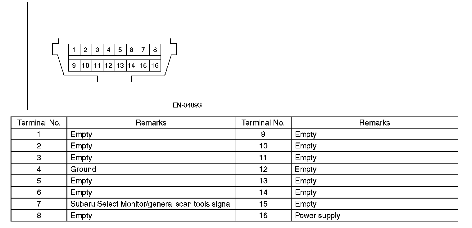 NOTE This connector is used both for general scan tools and the Subaru Select Monitor.