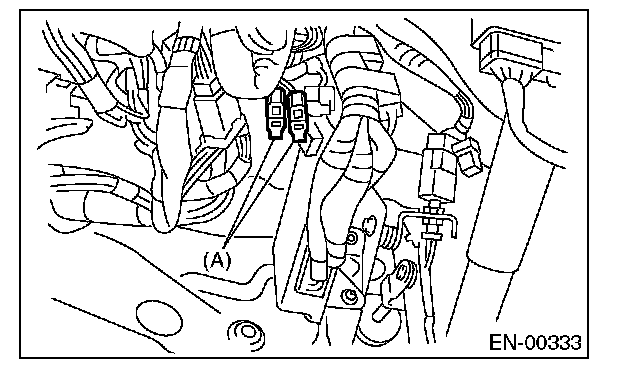 3. Connect the test mode connector (A) at the lower portion of instrument panel (on the driver's side).