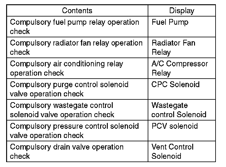 11. Select the desired compulsory actuator on the "Actuator ON/OFF Operation" display screen.