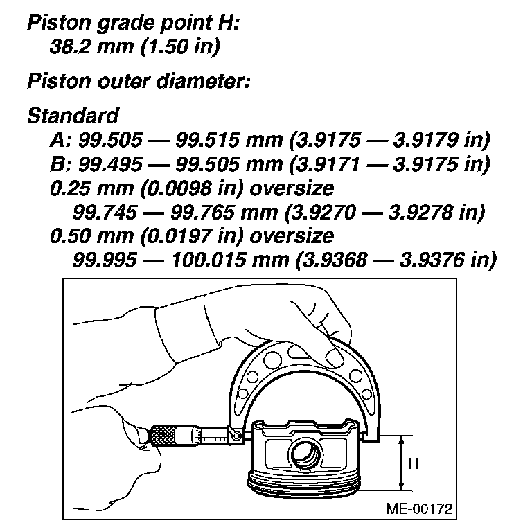 0.25 mm (0.0098 inch) oversize 99.745 - 99.765 mm (3.9270 - 3.9278 inch)