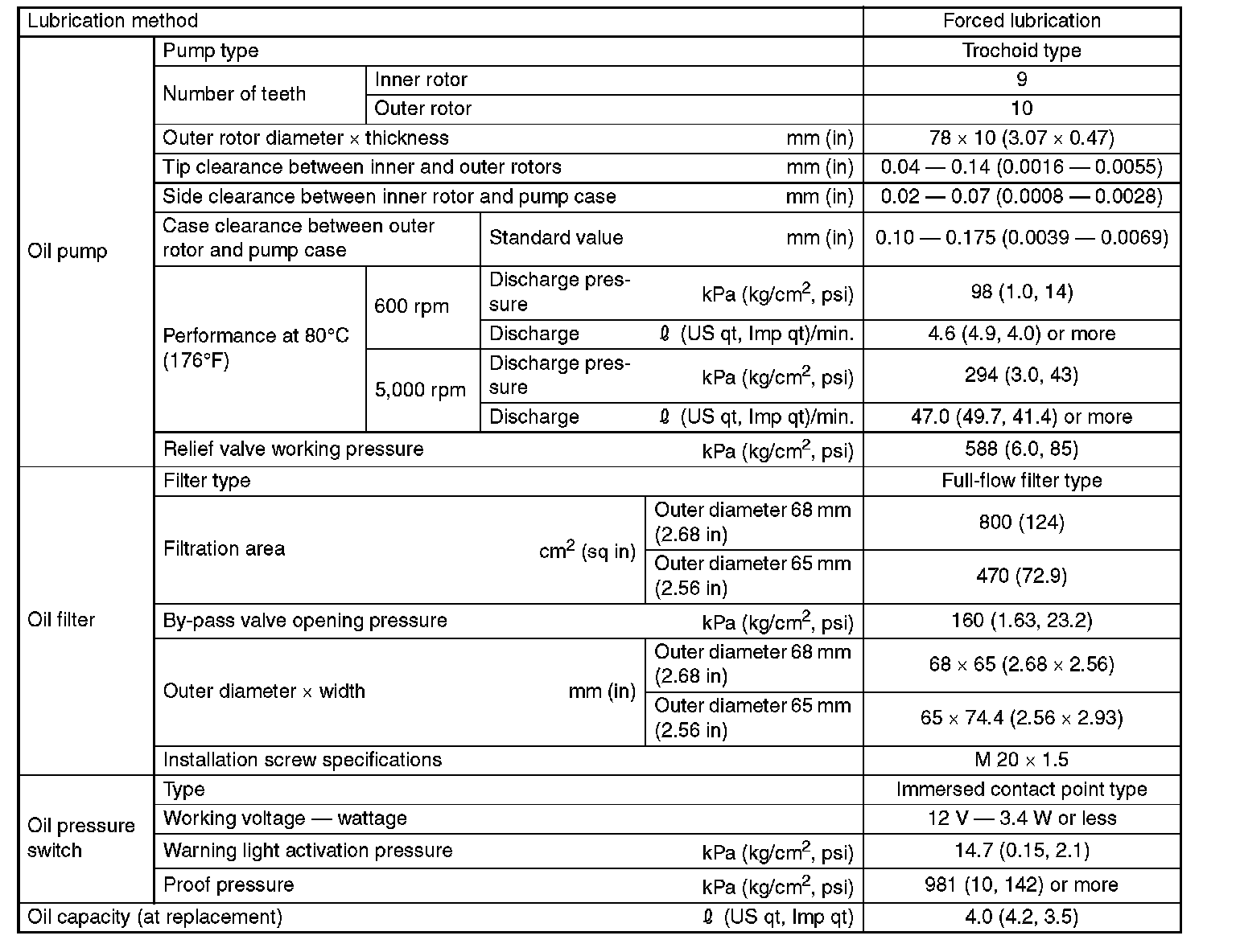 SPECIFICATIONRecommended oil: API standard SL with the "Energy Conserving" logo is printed (if you cannot obtain the oil with SL grade, you may use SJ grade "ENERGY CONSERVING" oil.)