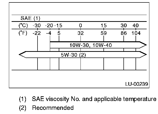 NOTE: If the vehicle is used in areas with very high temperatures or for other heavy duty applications, the following viscosity oils may be used: API standard: SL or SJ