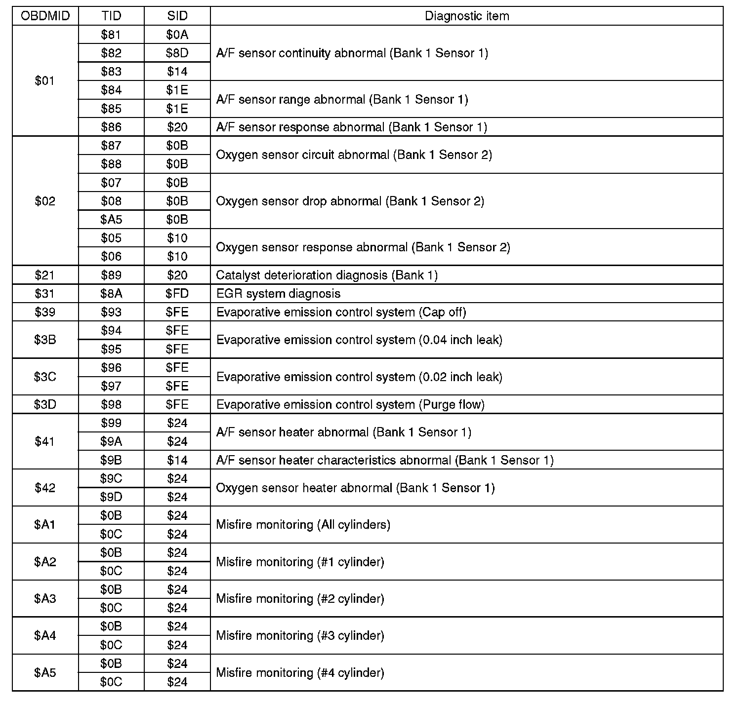 1. MODE $01: Current powertrain diagnostic data