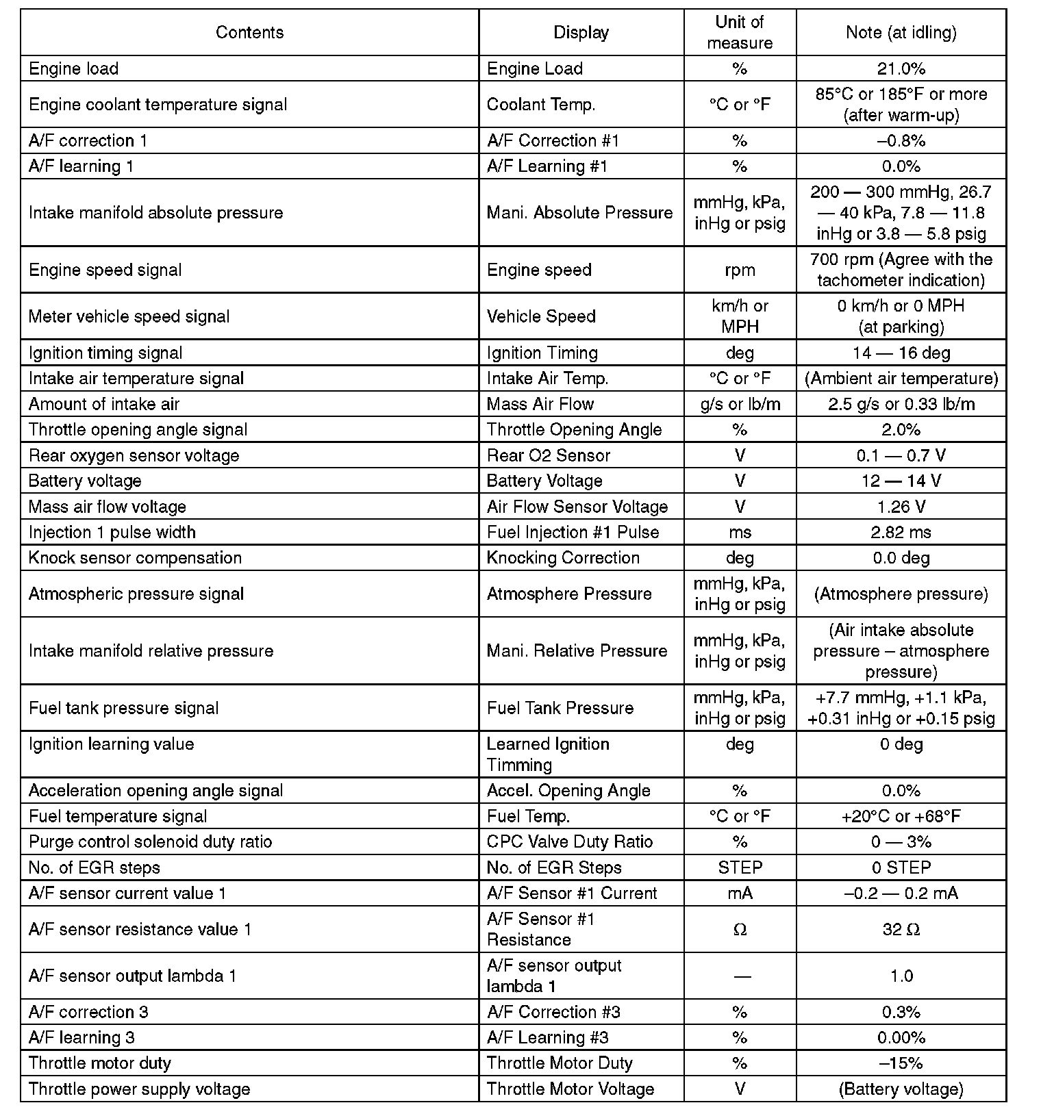 5. READ CURRENT DATA FOR ENGINE (OBD MODE)