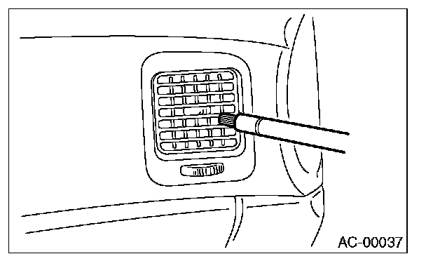 Stop the blower to check the ventilation grill on the instrument panel. While moving the tester closer to the grill, run the blower for 1 or 2 seconds, then stop it. Check the grill at that point for at least 10 seconds.