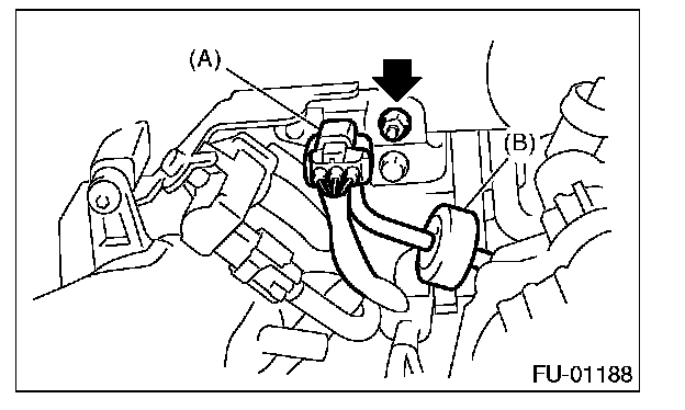 3. Disconnect the connector from manifold absolute pressure sensor (A), and remove the filter assembly (B) from intake manifold.