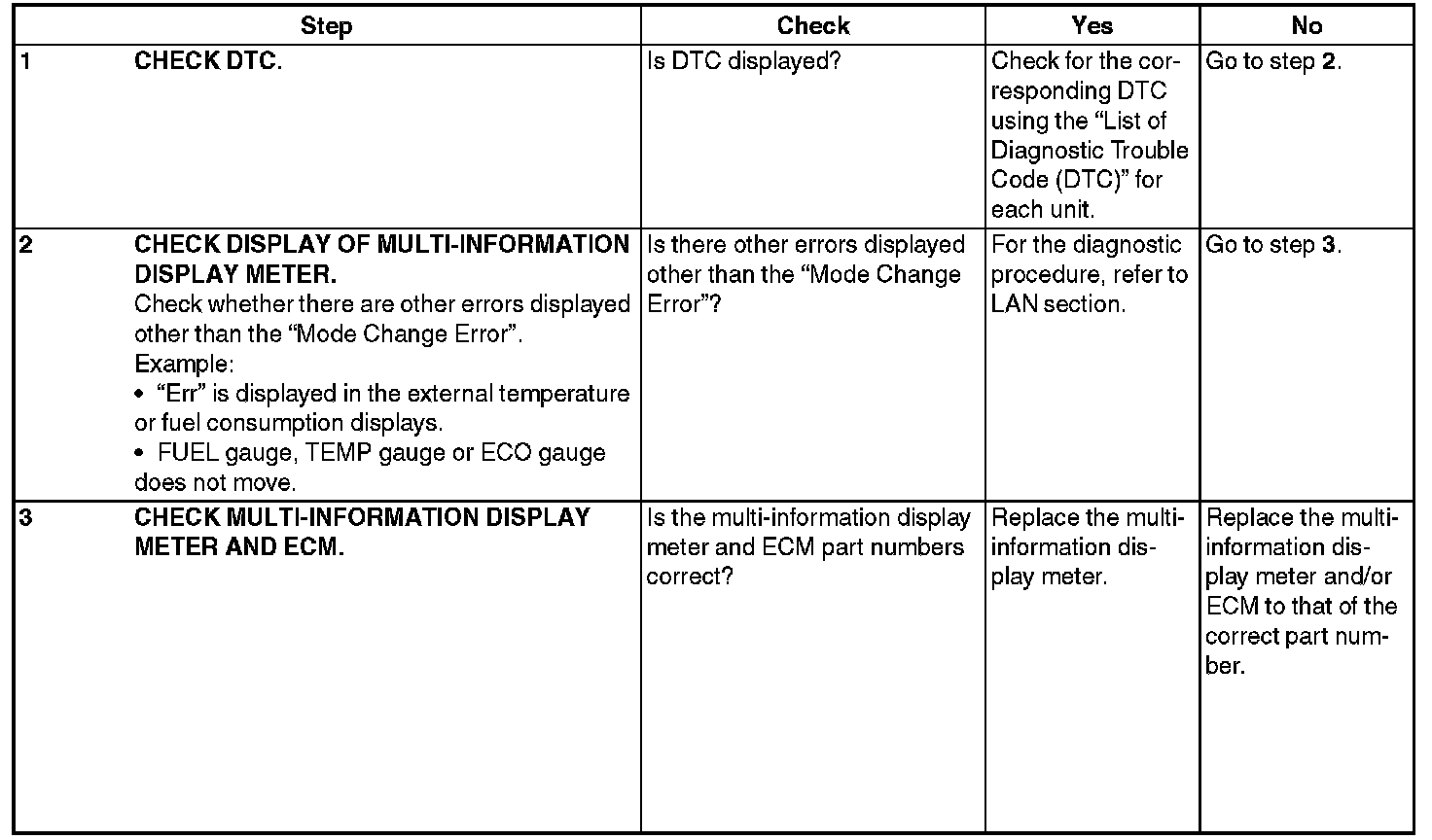 2. WHEN THE SI-DRIVE MODE IS CHANGED, MODE CHANGE ERROR APPEARS IN THE MULTI-INFORMATION DISPLAY APPROXIMATELY 5 SECONDS LATER.