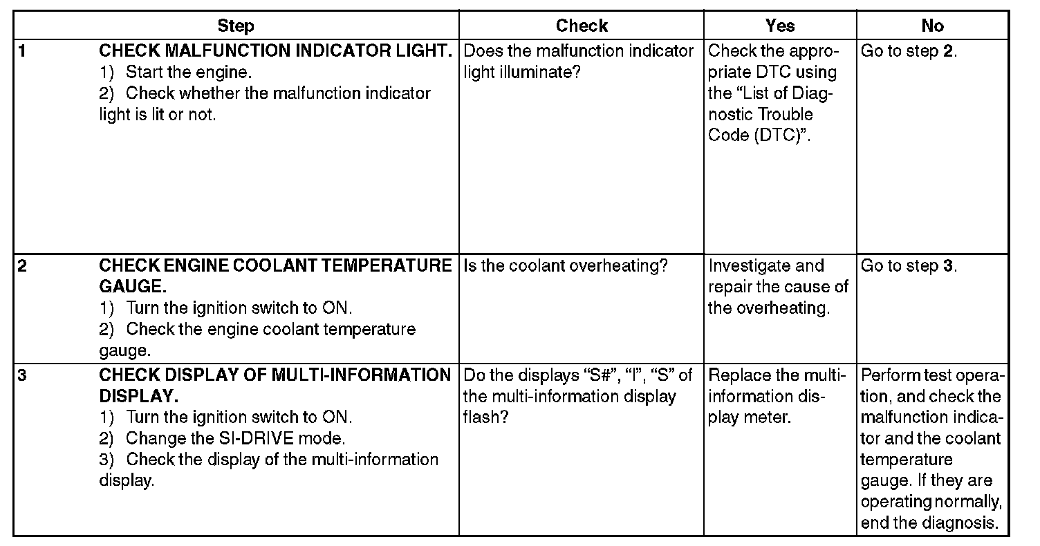 Diagnostic Procedure without Diagnostic Trouble Code (DTC)CHECK SI-DRIVE SYSTEM