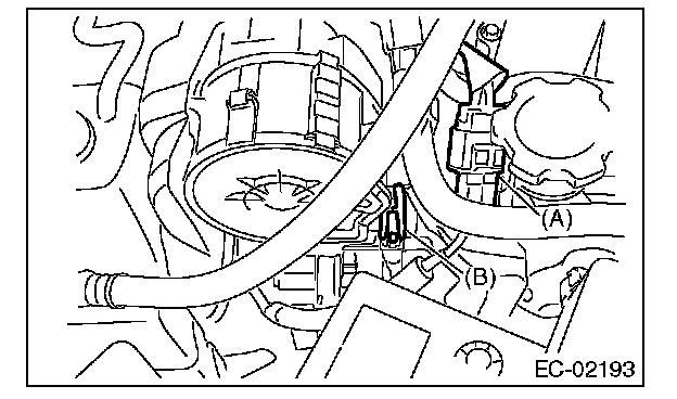 3. Disconnect the connector (A) from secondary air pump, and remove the harness.