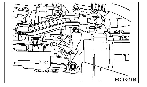 5. Remove the bolt (C) which secures the secondary air pump to the body.