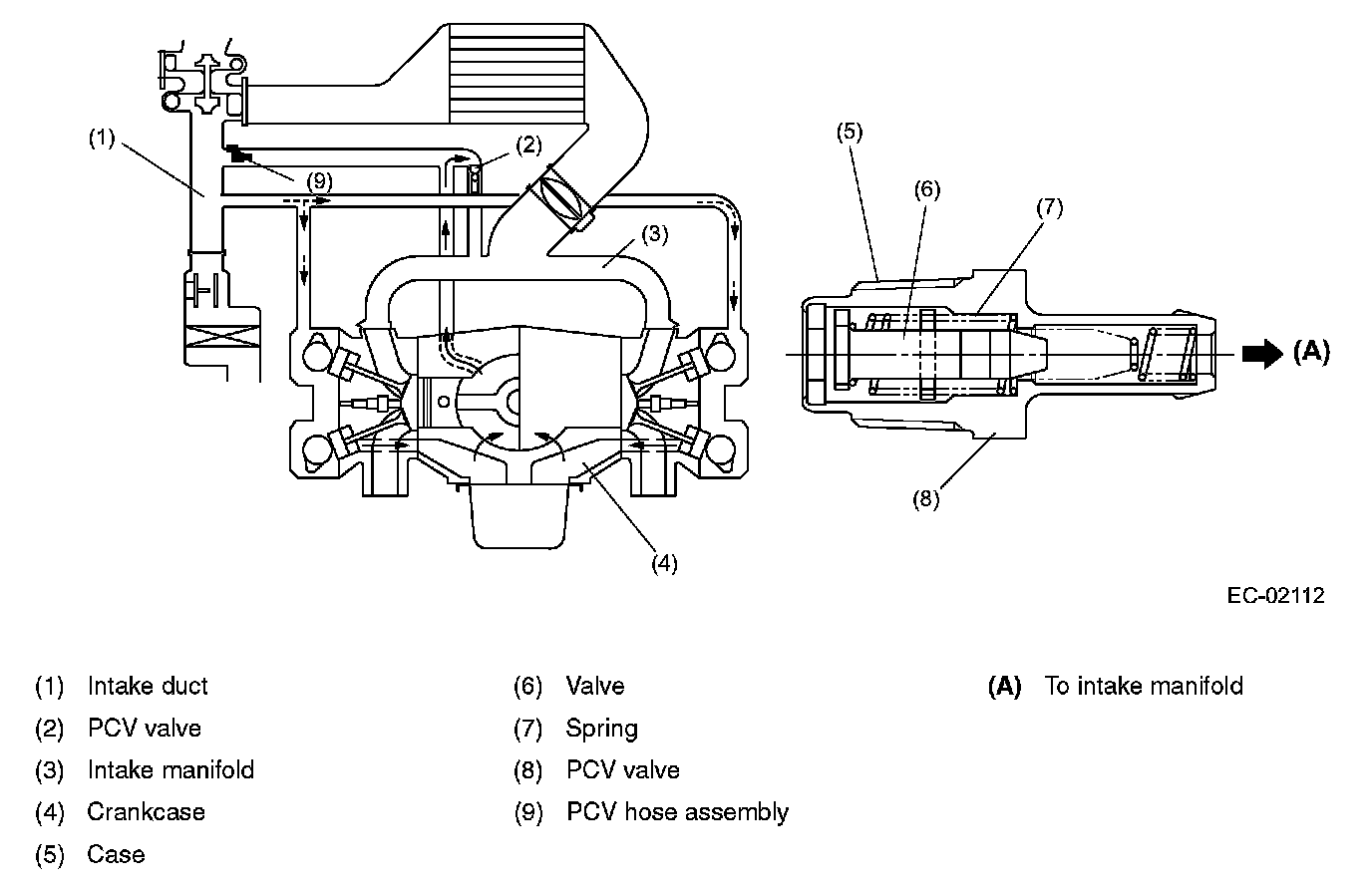 Crankcase Emission Control System- The positive crankcase ventilation (PCV) system prevents air pollution that will be caused by blow-by gas being emitted from the crankcase.