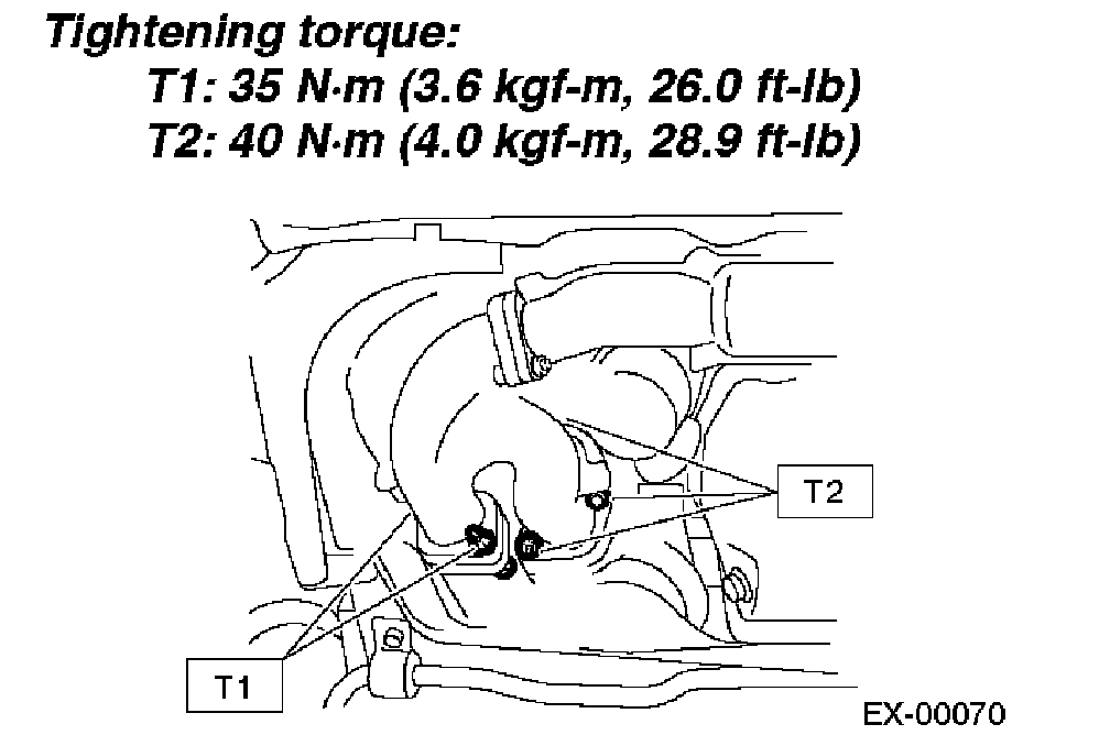 Front exhaust pipe and exhaust manifoldTightening torque 35 Nm (3.6 kgf-cm, 26.0 ft. lbs.)