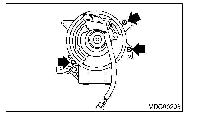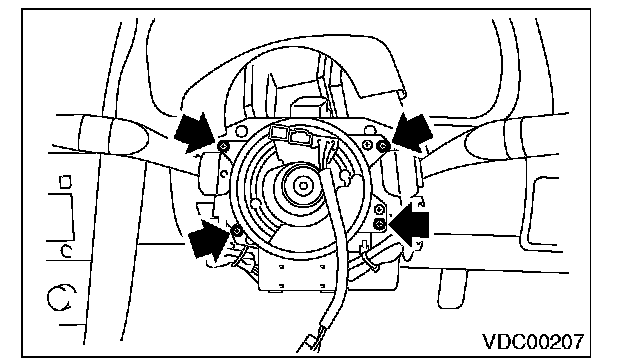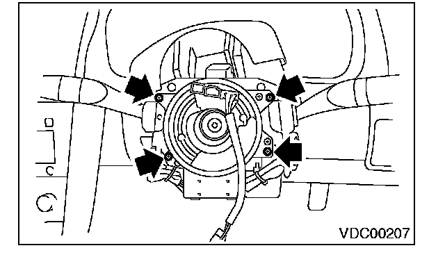 8) Remove the screws which secure the roll connector to steering column.