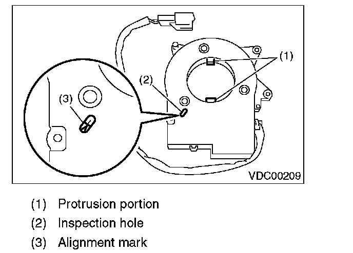 10) Turn the protrusion portion of new steering angle sensor to match the alignment mark of inspection hole.