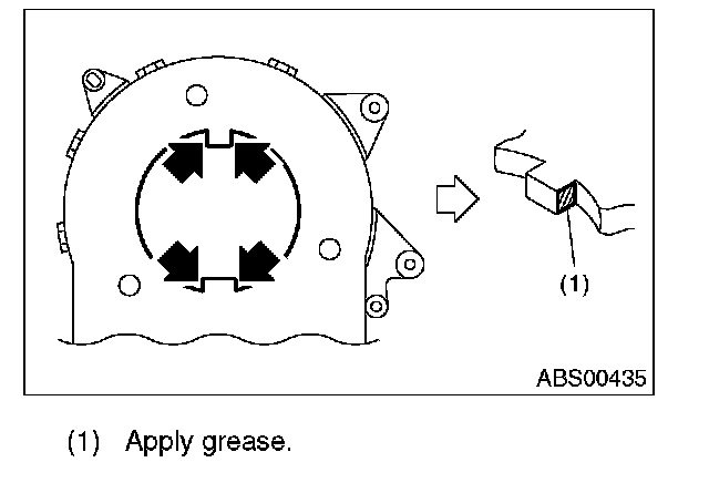 12) Apply a thin coat of grease that is supplied with the new part, to the 4 protruding sections of the steering angle sensor.