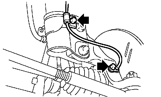 5. Remove the bolts which secure the sensor harness to the front strut.