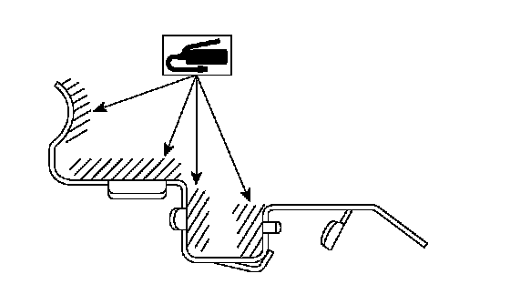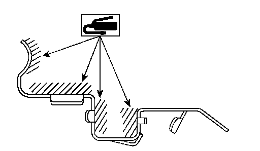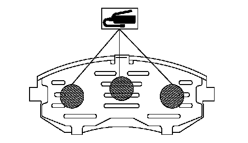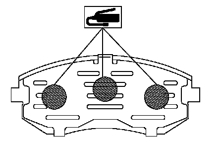3. Apply a thin coat of Molykote AS880N (Part No. K0779YA010 to the three frictional portions between inner shim and outer shim of outer pads.
