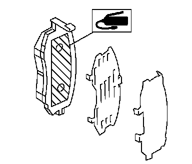 2. Apply a thin coat of Molykote AS880N (Part No. K0779YA010 to the frictional portion between pad and pad inner shim.