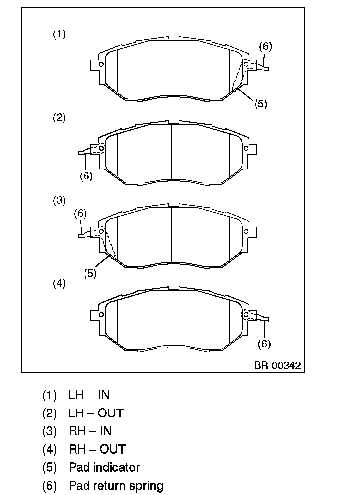 ^ When the pad return spring is deformed or damaged, replace the brake pad with new one.