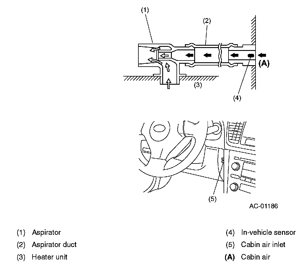 This sensor consists of an aspirator and a thermistor, the resistance of which changes in inverse proportion to the temperature. The aspirator operates by a vacuum generated in the heater unit (only when the blower unit is turned on).