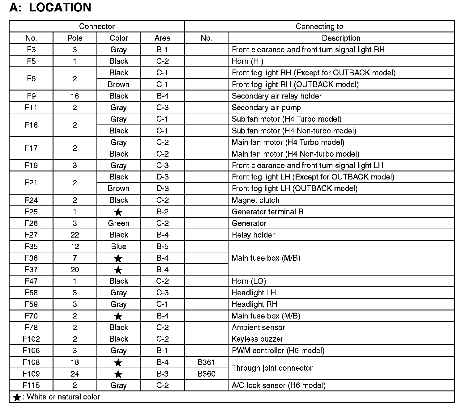 Outback F4-2.5L SOHC
