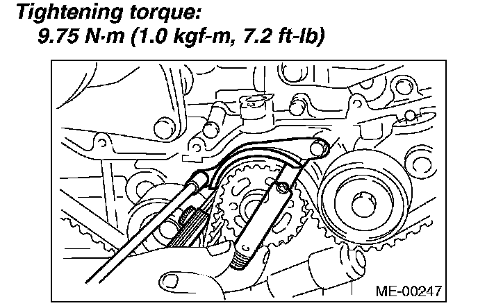 1. Check the mating surfaces of timing belt and contact point of adjuster rod for abnormal wear or scratches. Replace the automatic belt tension adjuster assembly if faulty.
