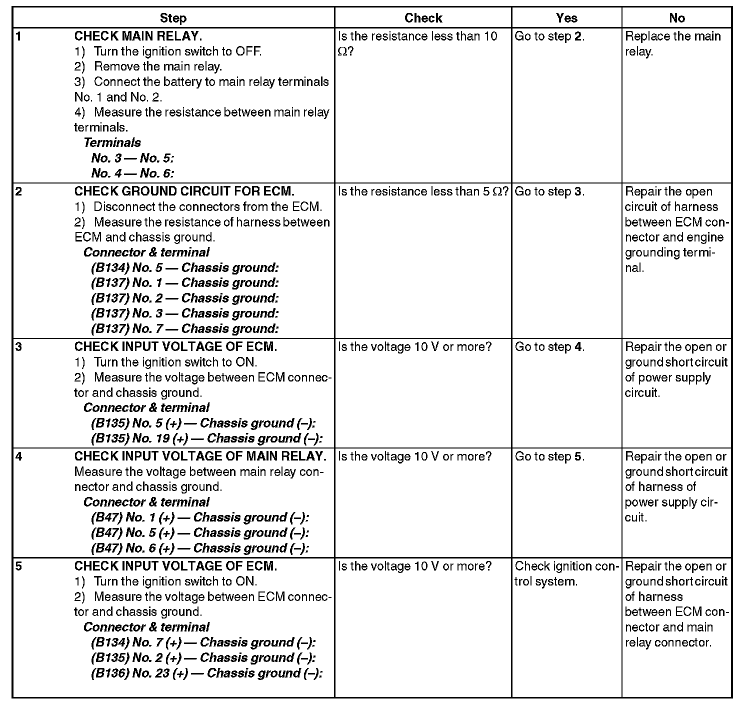 Check Power Supply and Ground Line of Engine Control Module (ECM)