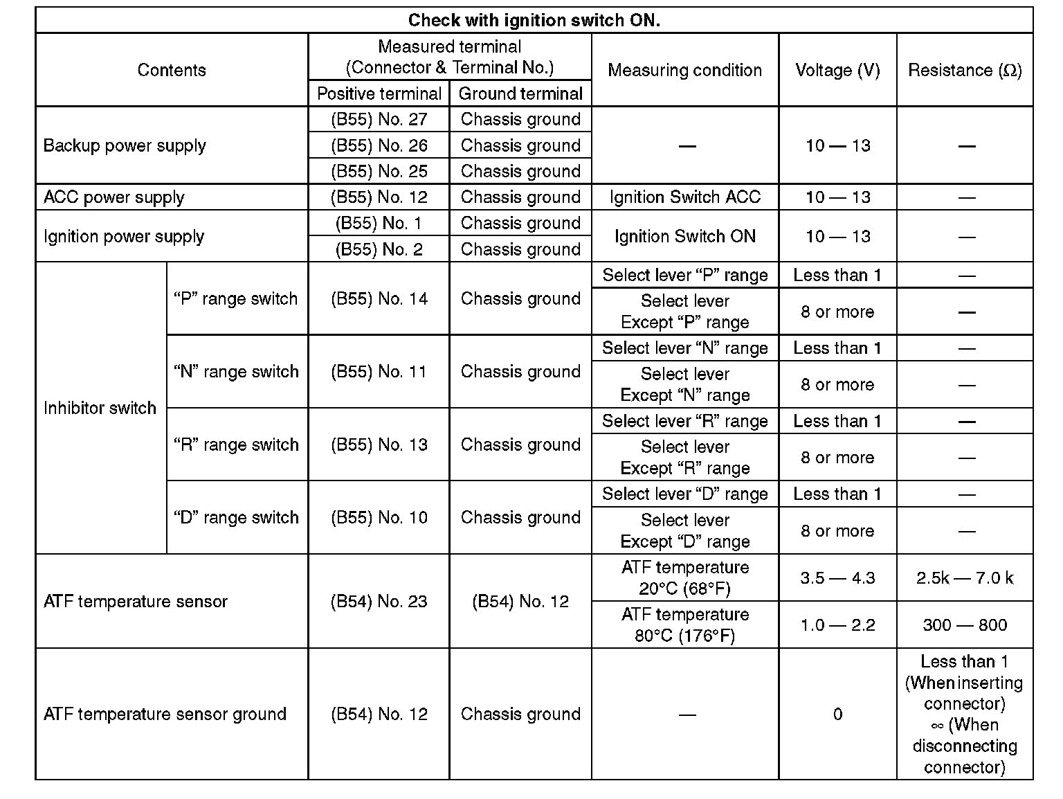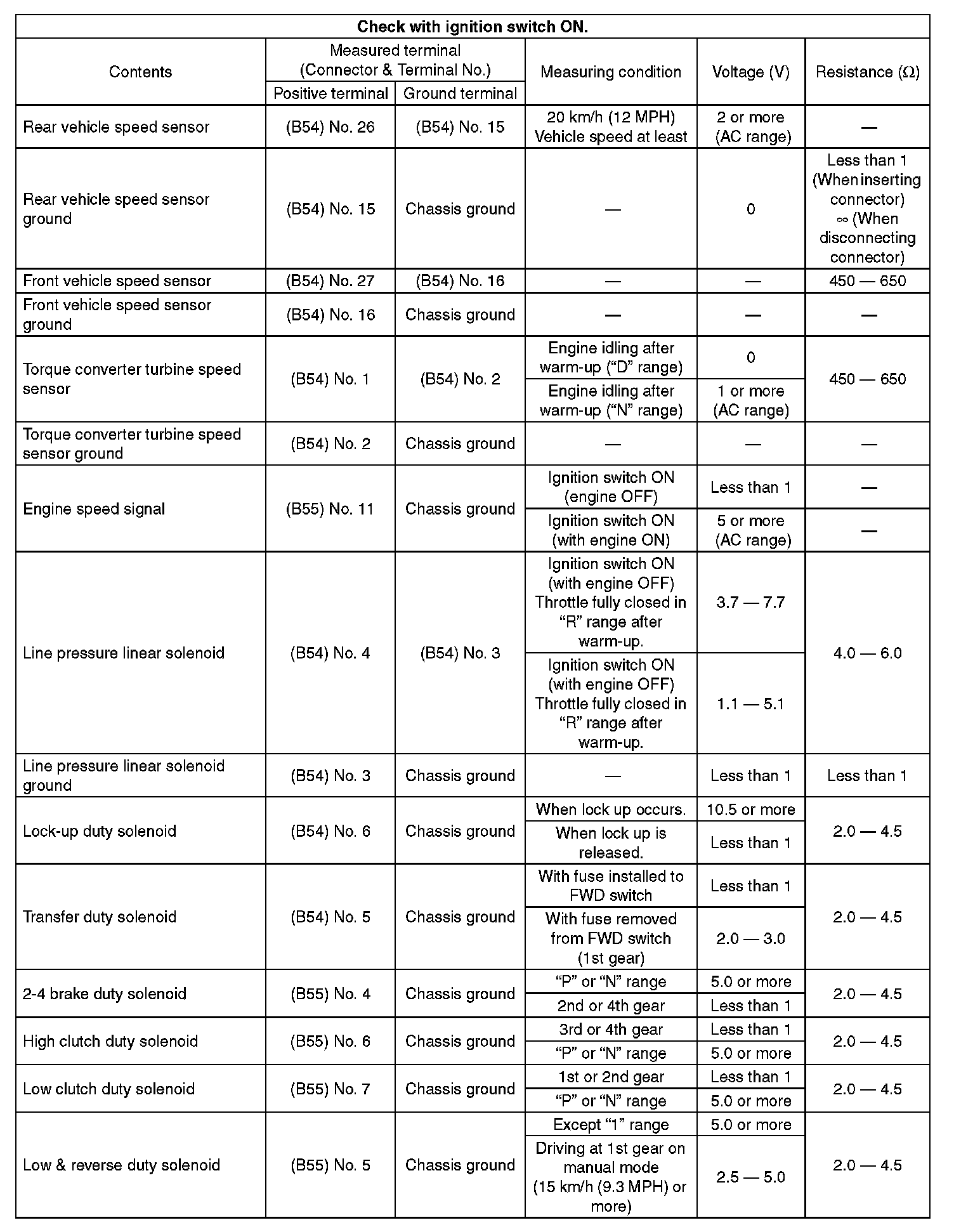 Transmission Control Module (TCM) I/O SignalELECTRICAL SPECIFICATIONELECTRICAL SPECIFICATION (Part 1):