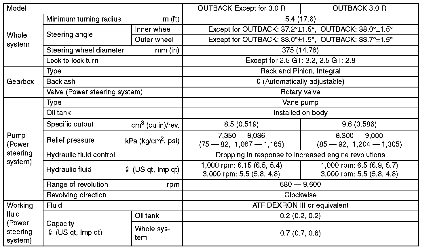 Outback F4-2.5L SOHC